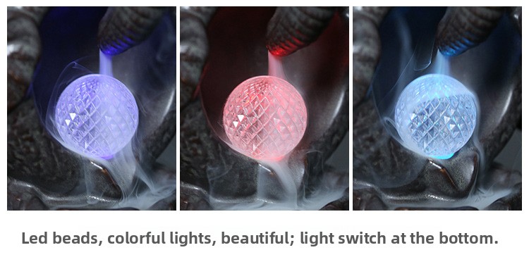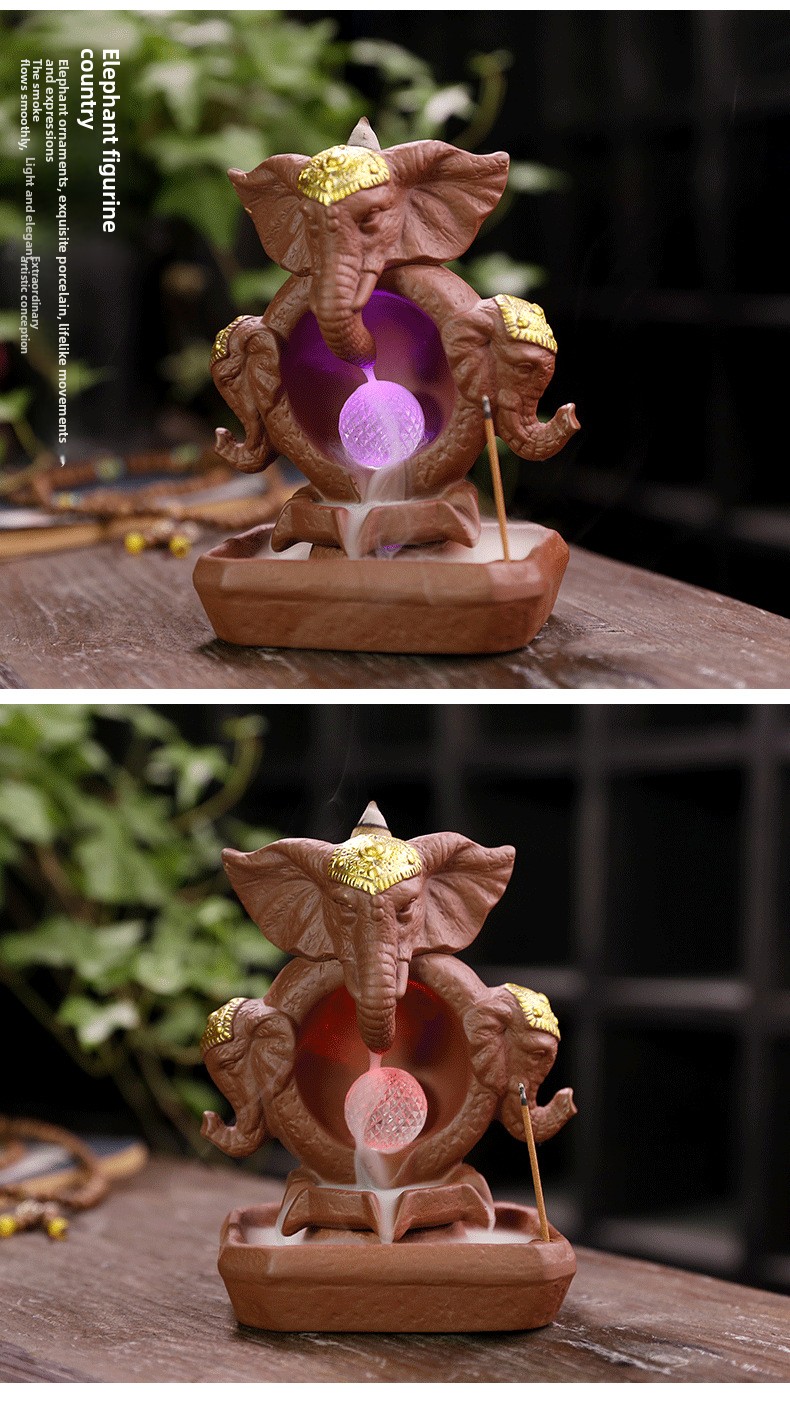 Ceramic Elephant Backflow Incense Burner, Creative LED Light Elephant God Aromatherapy Burner Backflow Smoke Home Ornament