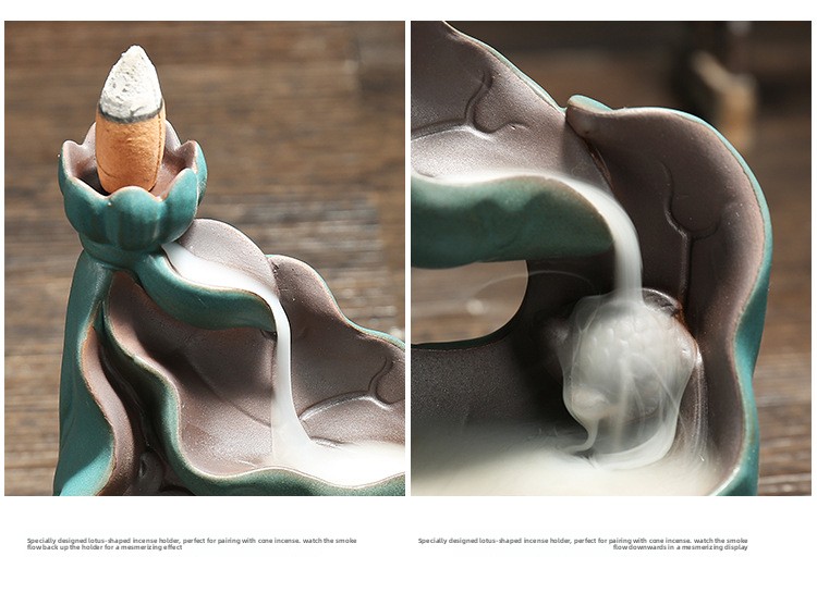 Ceramic green lotus backflow incense burner, small novice aromatherapy burner ornament, handicrafts, more incense every year - Toy Collection