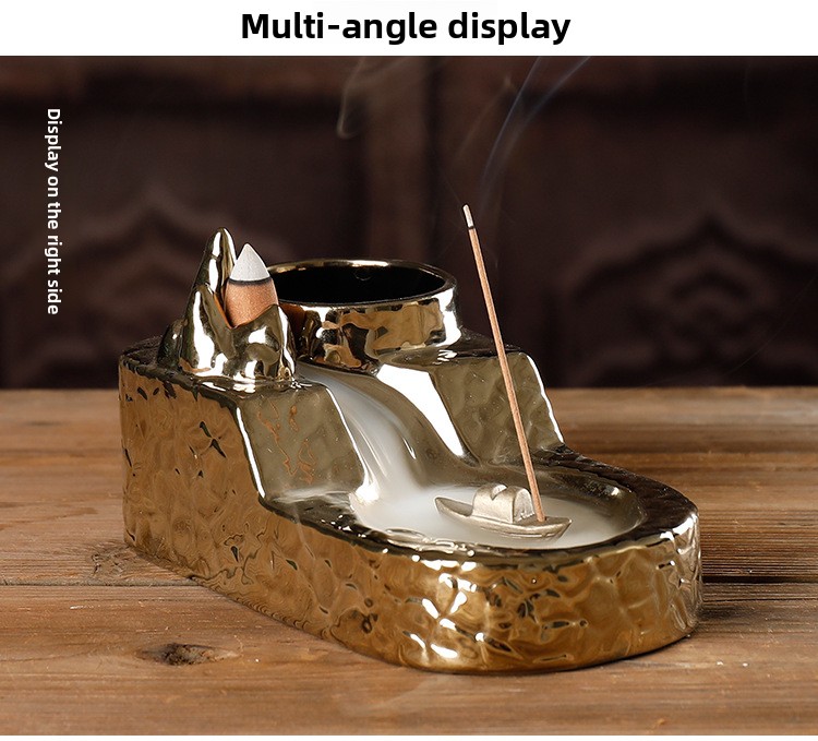 Ceramic Sandalwood Smoke Backflow Aromatherapy Furnace, Creative Gold-plated Landscape Hydroponics Multifunctional Fragrance Ornament