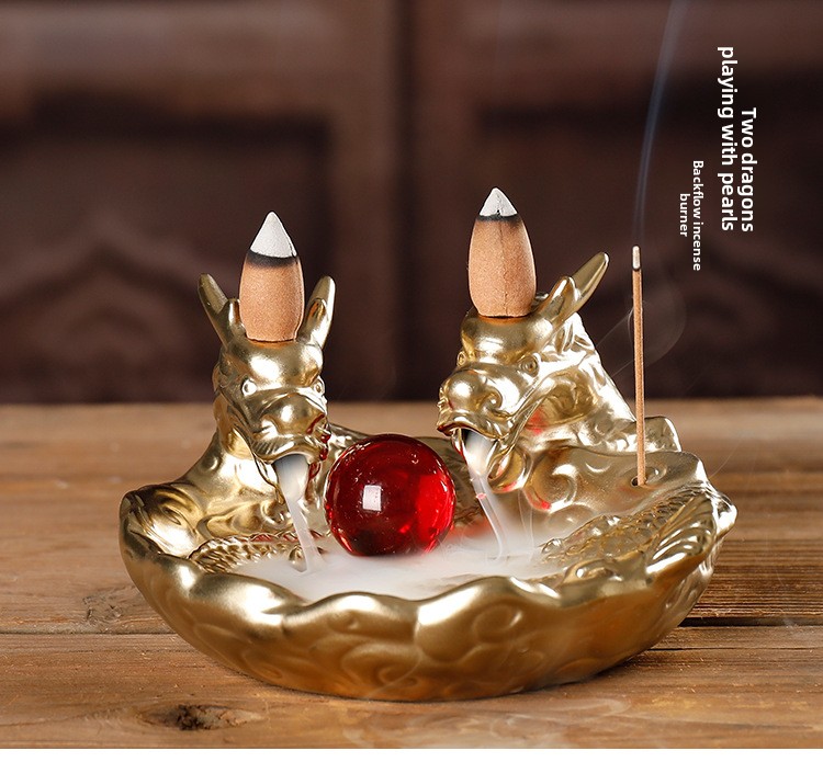Ceramic small color dragon smoke backflow aromatherapy stove creative double dragon play beads sandalwood stove home ornament