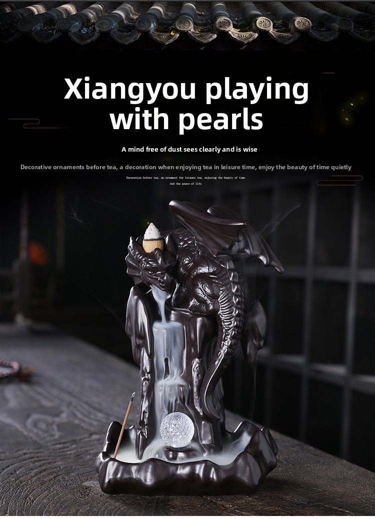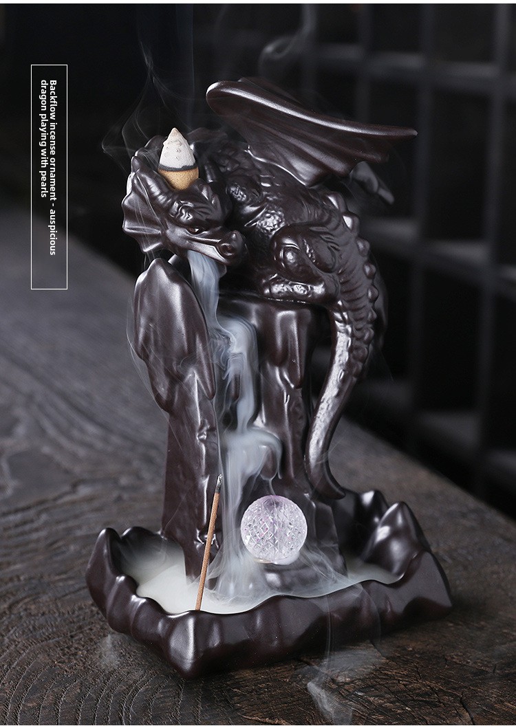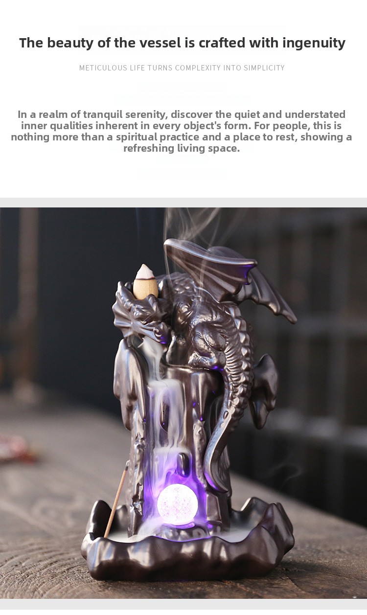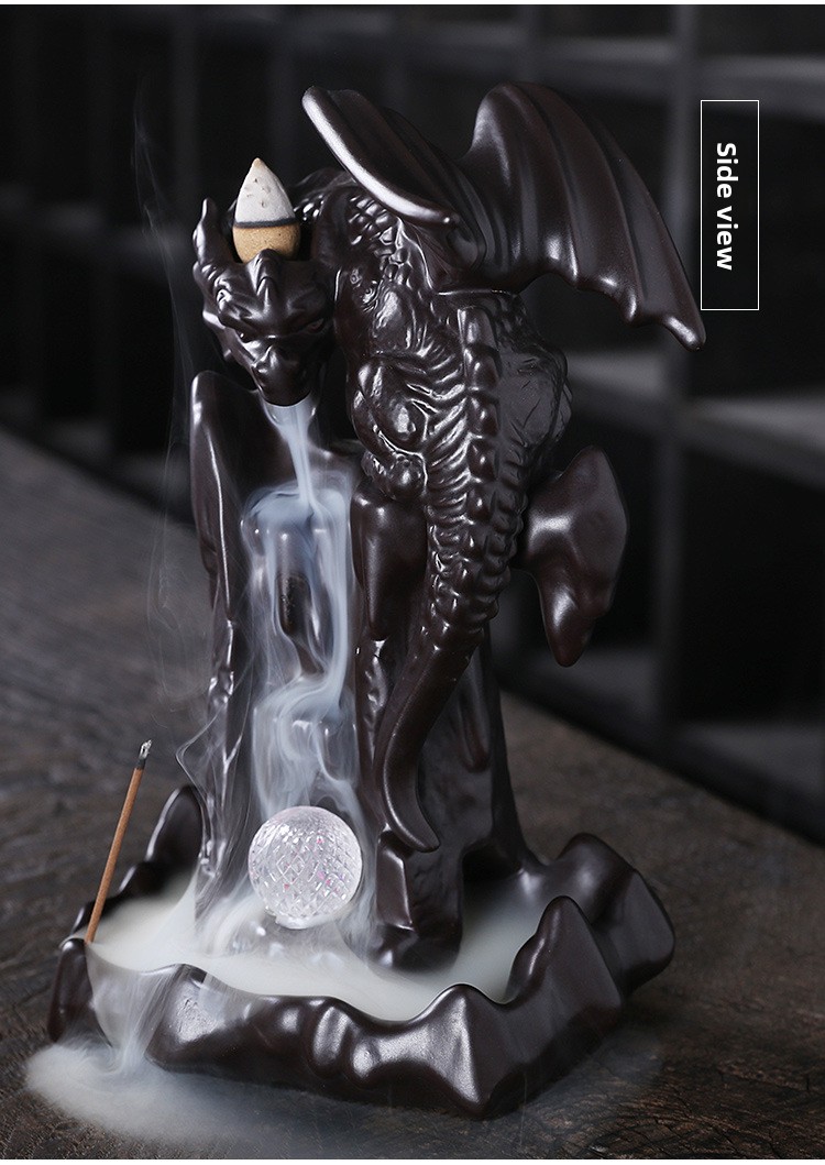 Ceramic smoke backflow agarwood stove, Nordic pterosaur LED light backflow stove ornament handicraft gifts