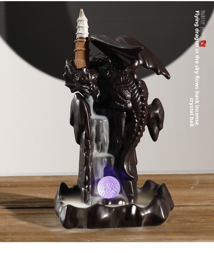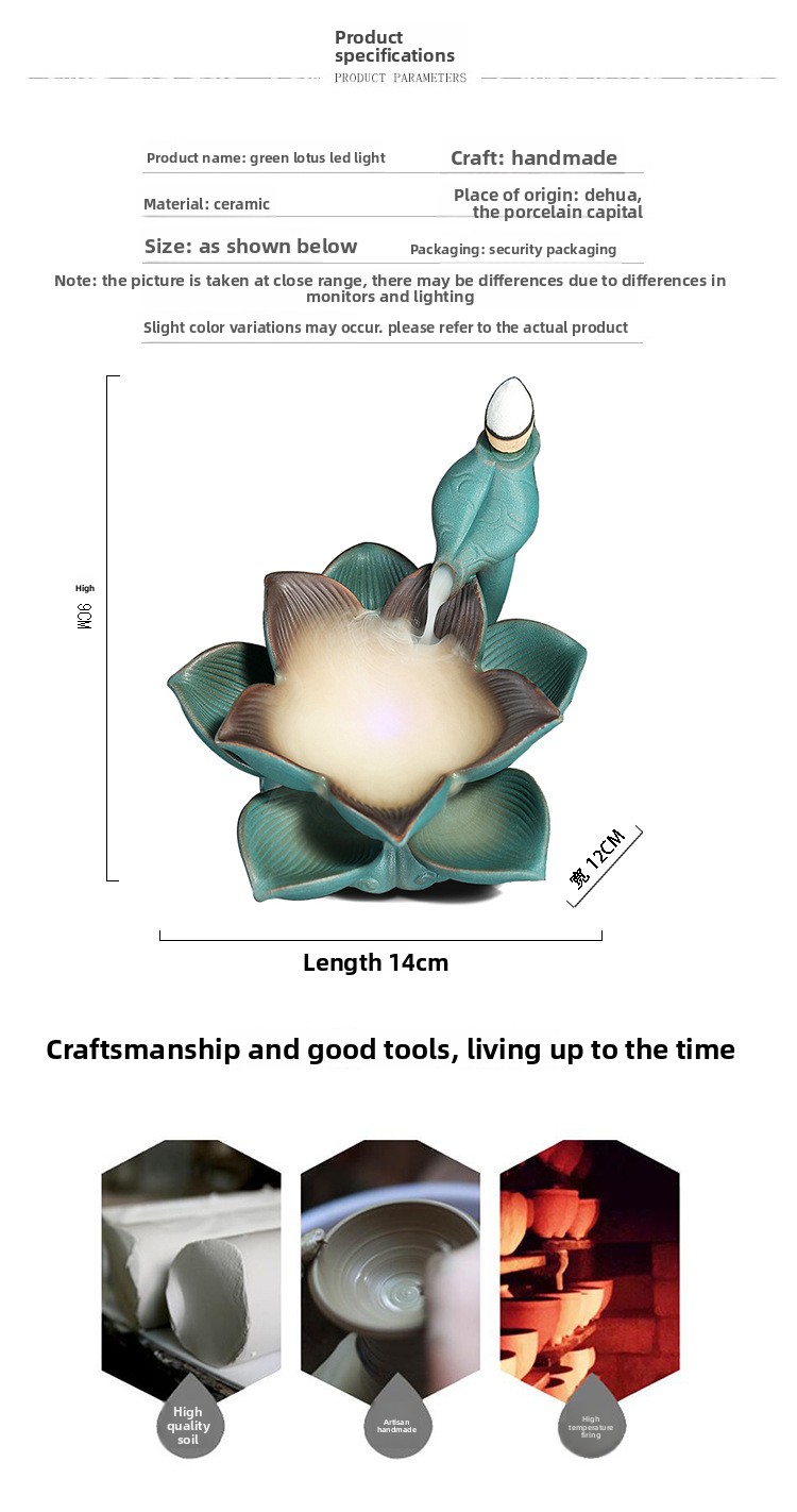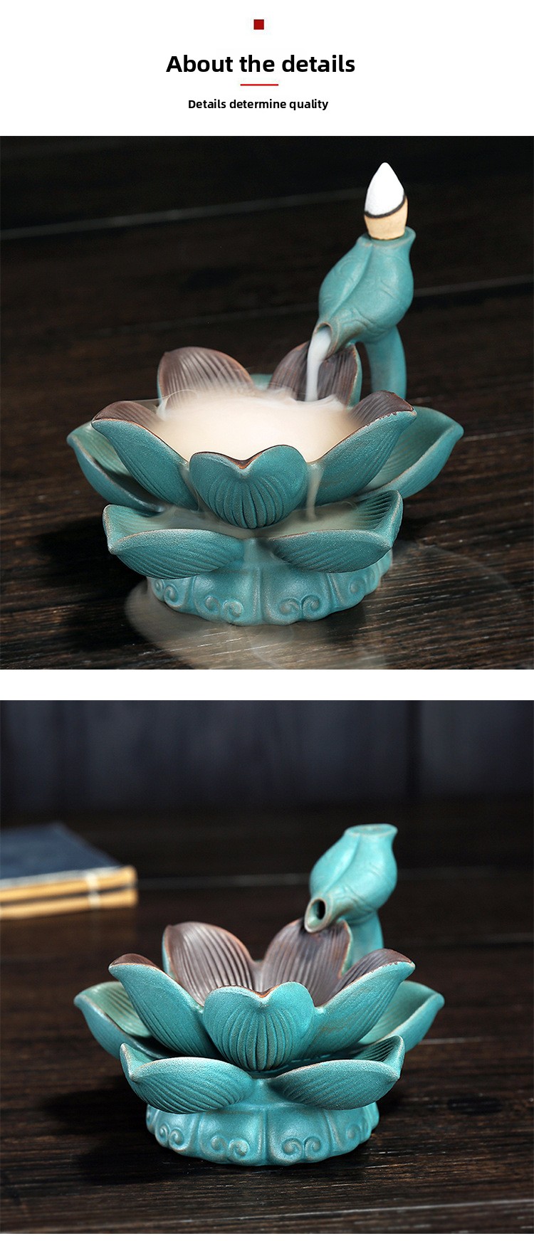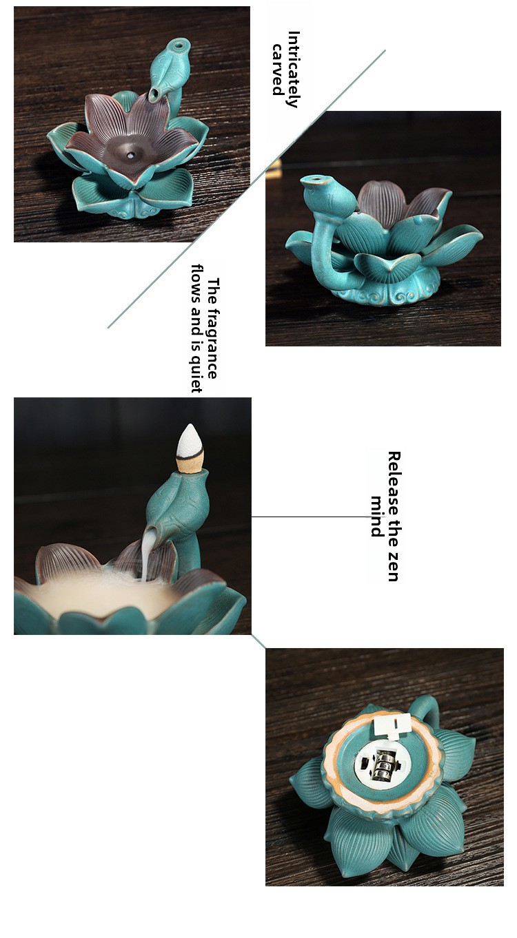 Dust ceramic smoke backflow aromatherapy stove, creative LED colorful lamp lotus backflow sandalwood stove craft ornament