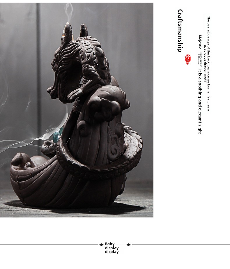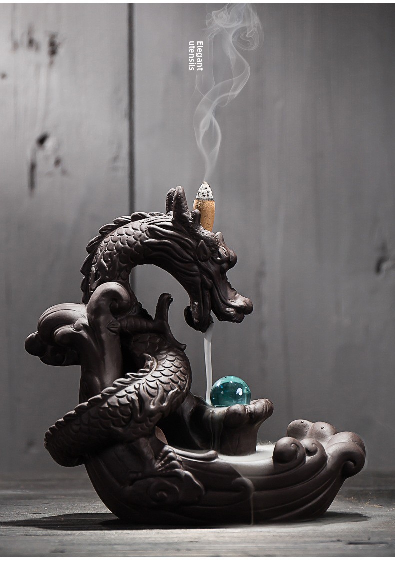 Large purple sand dragon smoke backflow incense burner tea ceremony ornament, creative incense burner dragon home decoration original incense