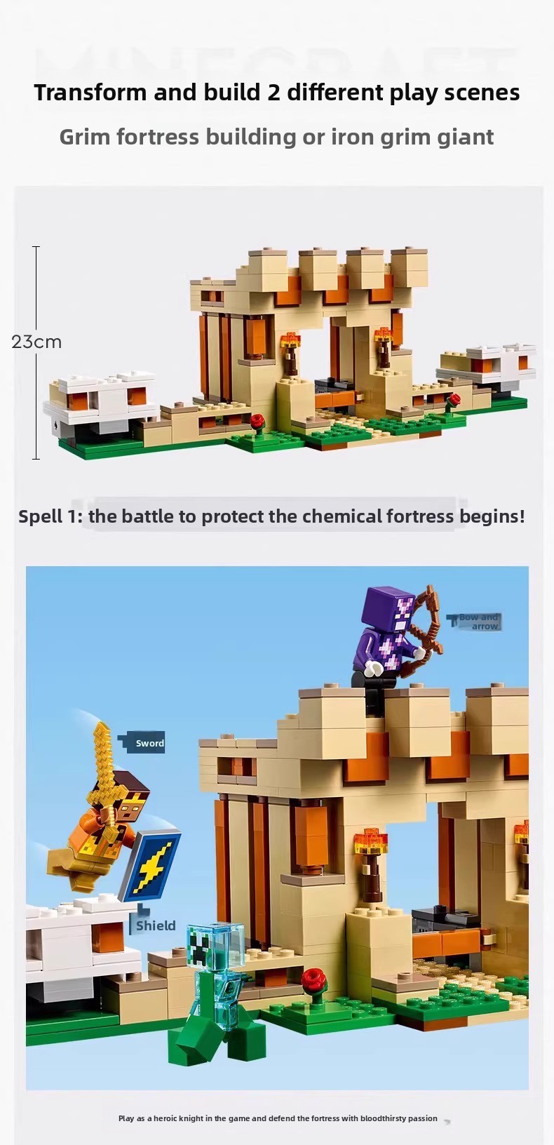 Compatible with Lego, Minecraft series building blocks Iron Puppet Fortress 21250 villages, assembled, educational toys
