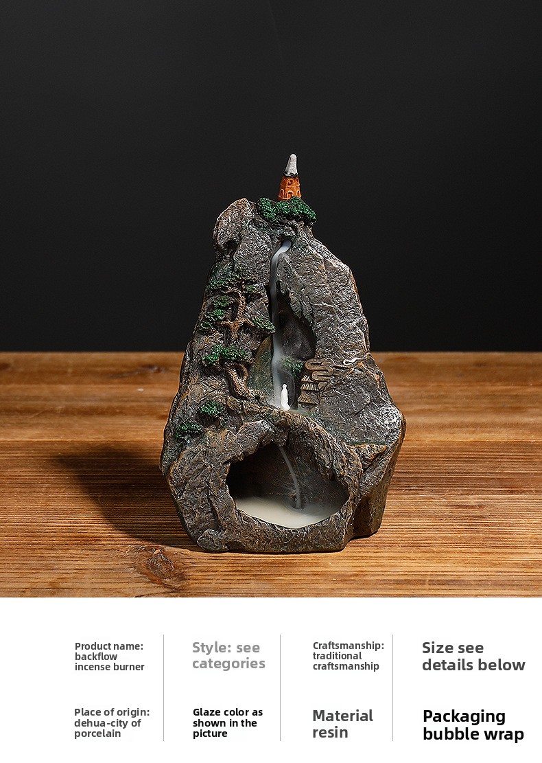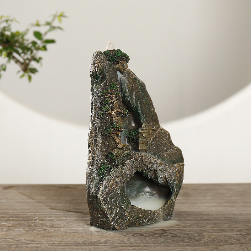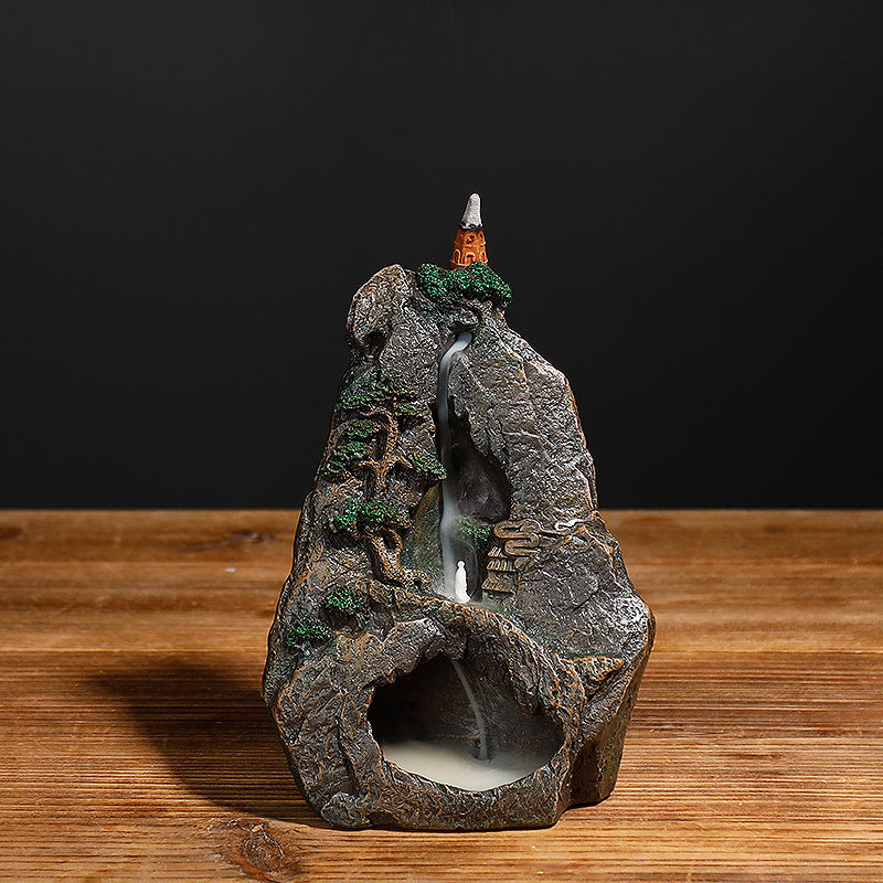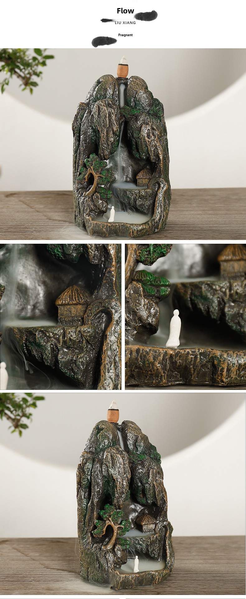 Landscape Waterfall Craft Gifts Backflow Aromatherapy Stove, Creative Resin Backflow Sandalwood Aromatherapy Stove Ornament