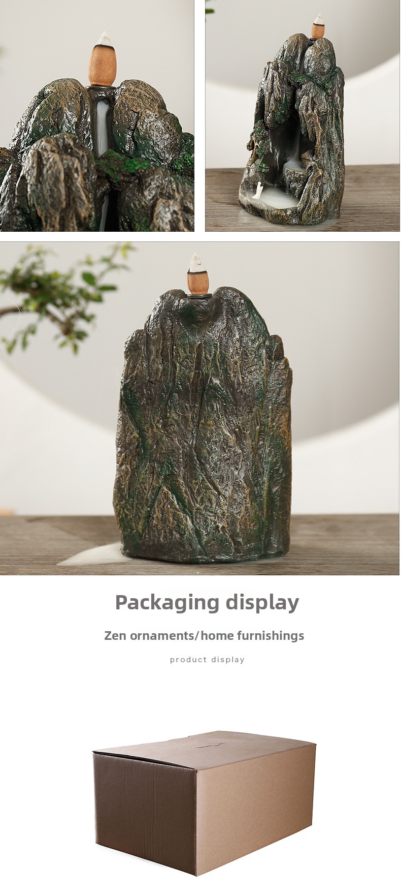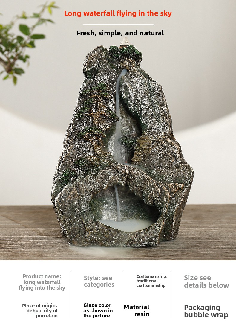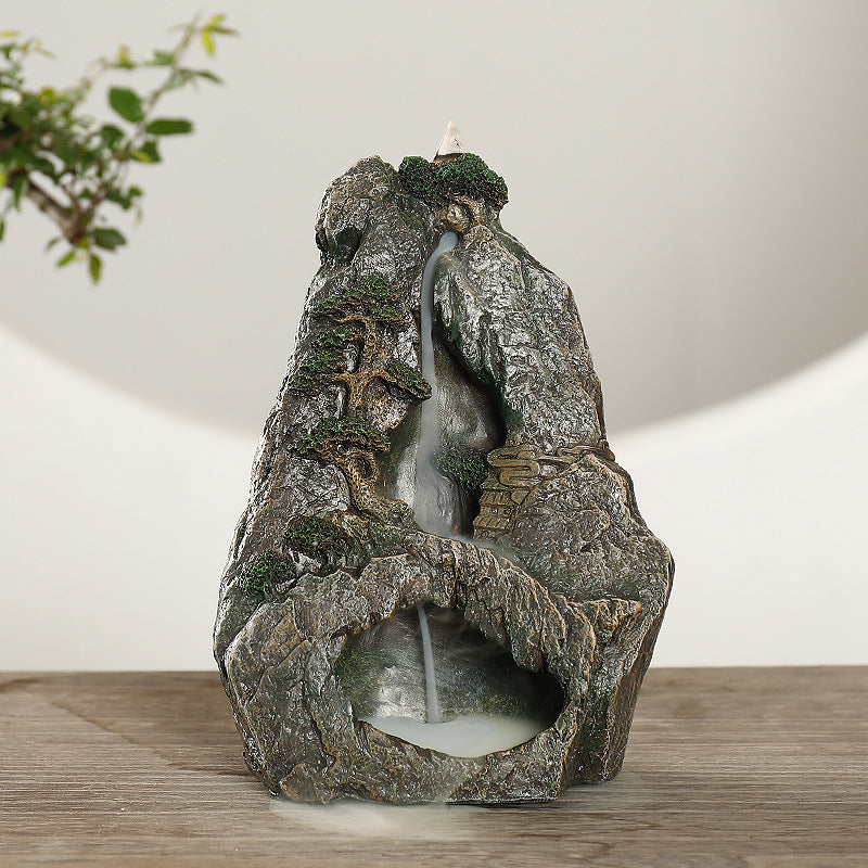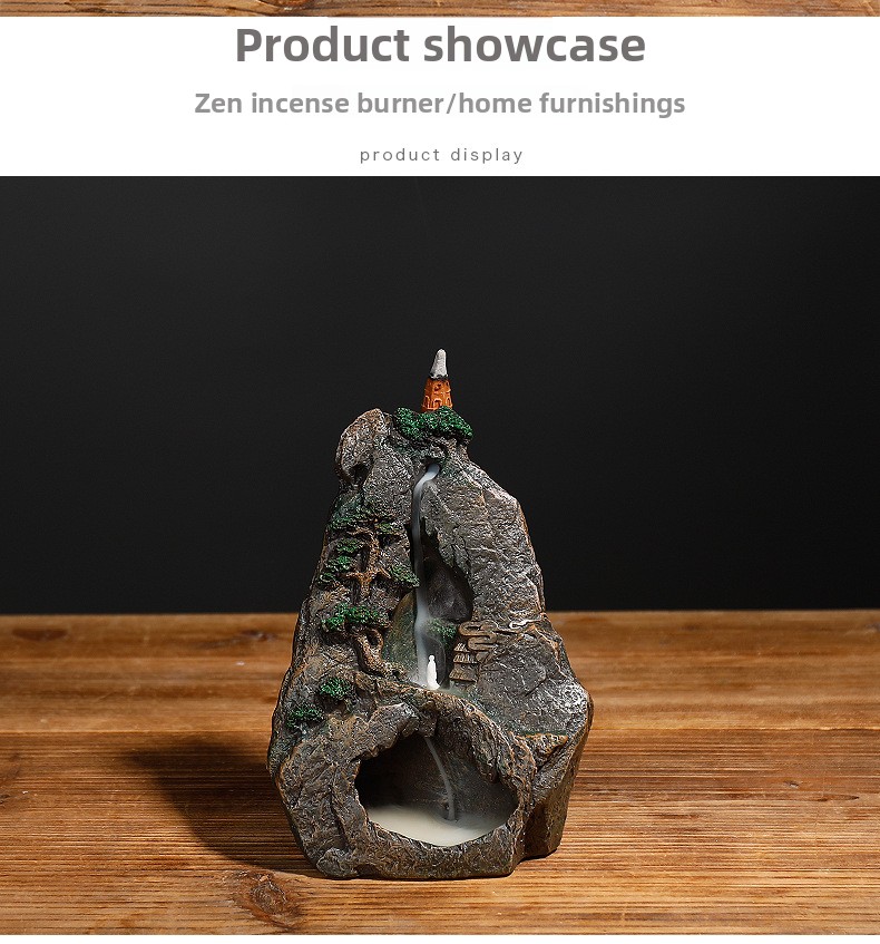 Landscape Waterfall Craft Gifts Backflow Aromatherapy Stove, Creative Resin Backflow Sandalwood Aromatherapy Stove Ornament