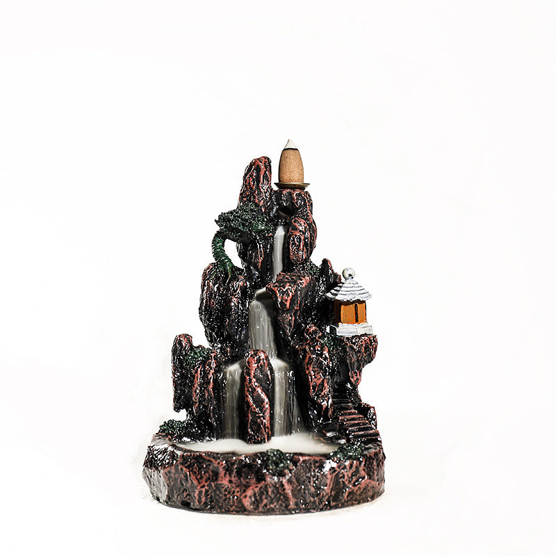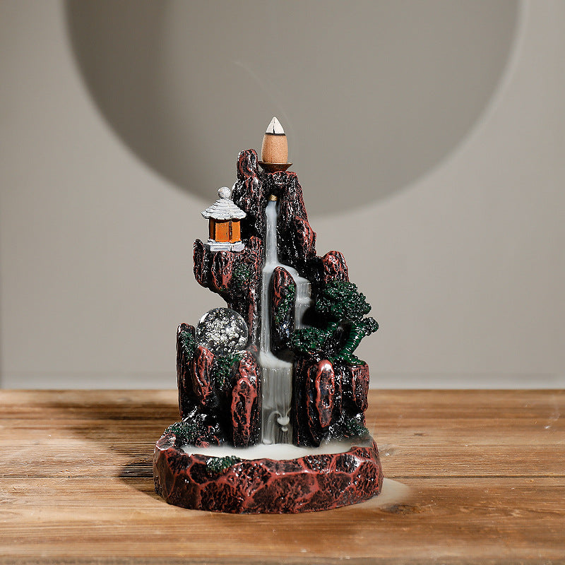 New resin smoke backflow incense burner, creative alpine and flowing water LED light ornamental backflow aromatherapy burner original