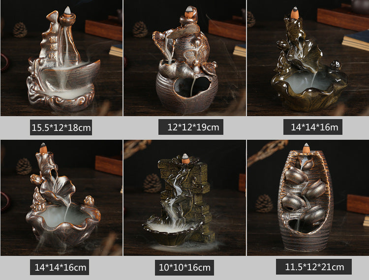 Original, mountains and flowing water, smoke will flow back, sandalwood incense burner reflux incense, Dehua ceramic handicraft ornament