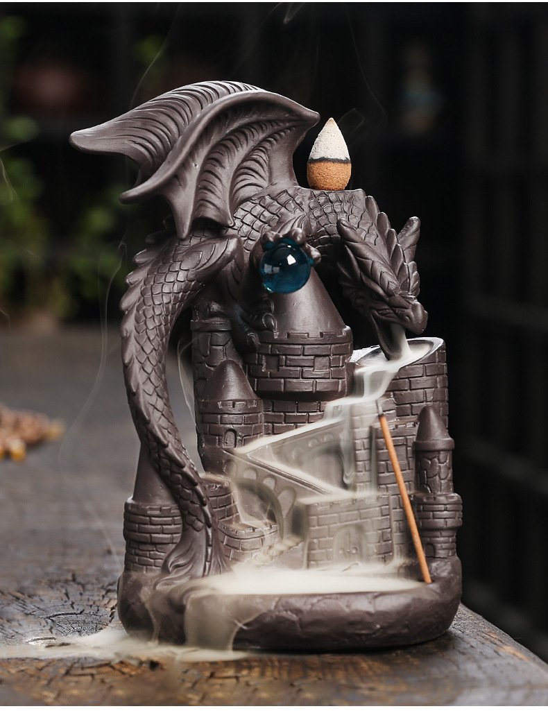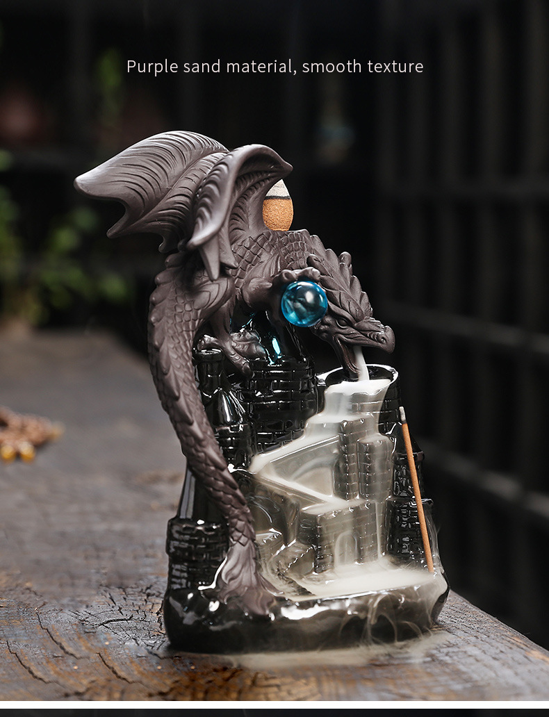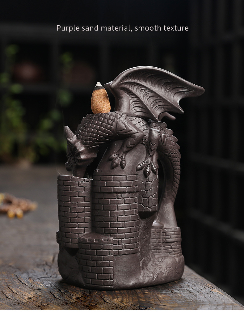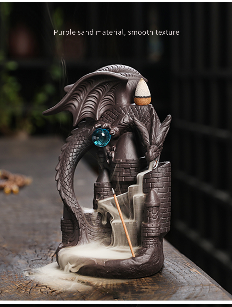 Purple sand pterosaur backflow incense burner, creative ceramic castle pterosaur backflow smoke aromatherapy burner ornament crafts