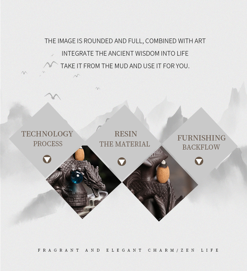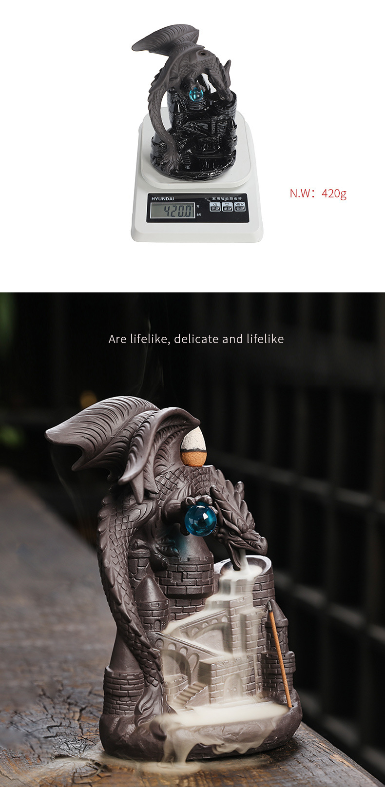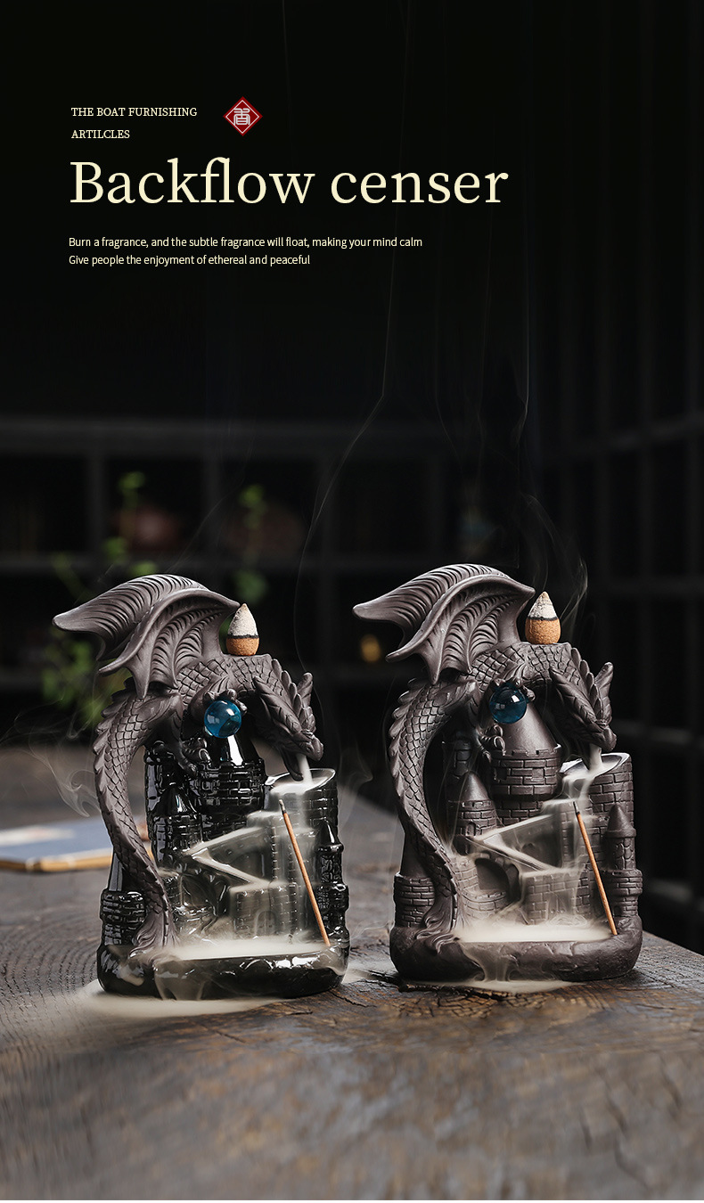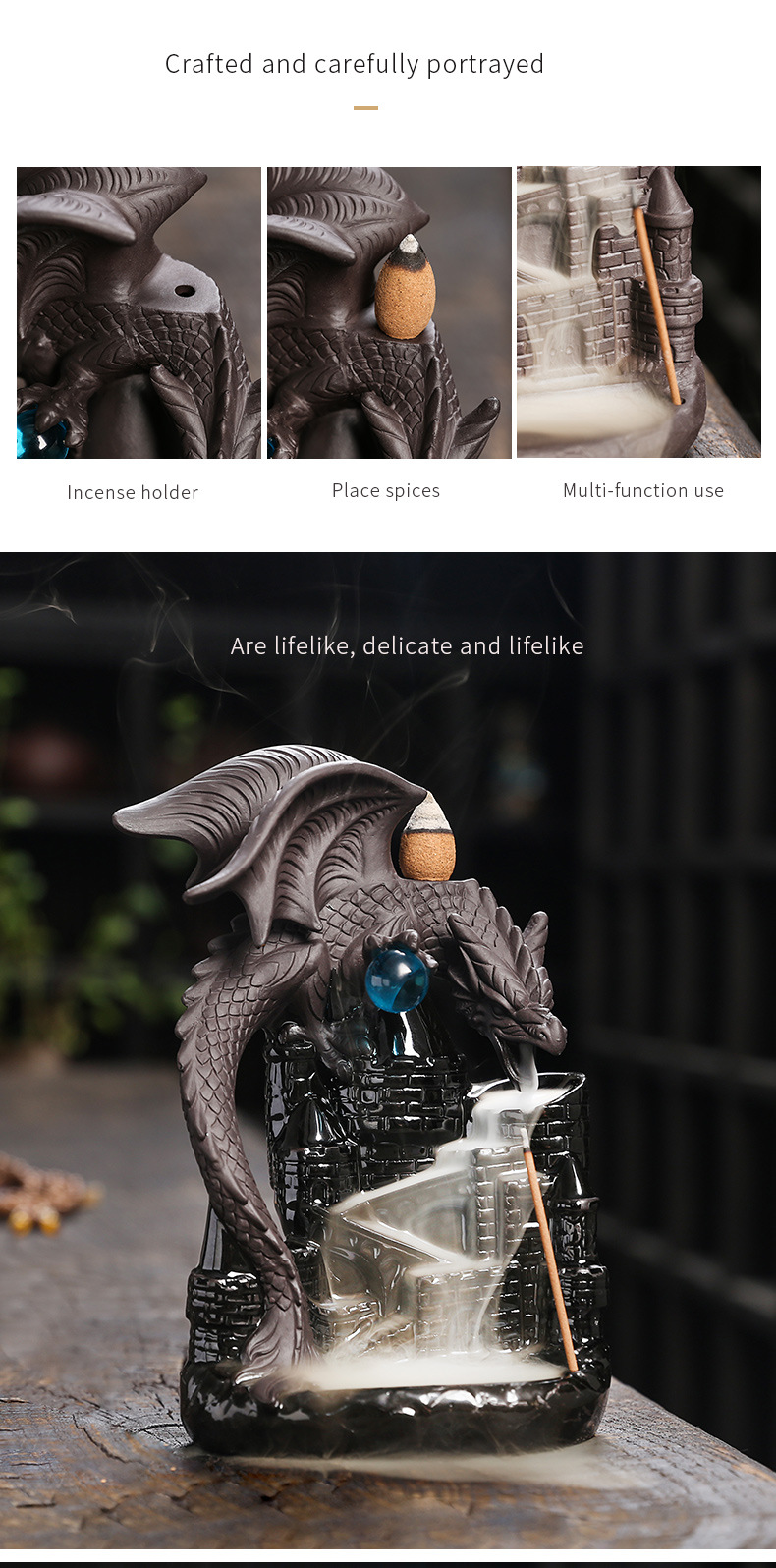 Purple sand pterosaur backflow incense burner, creative ceramic castle pterosaur backflow smoke aromatherapy burner ornament crafts