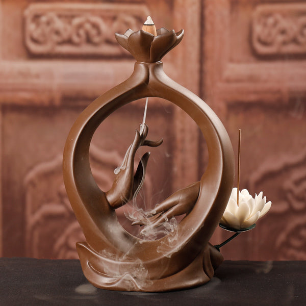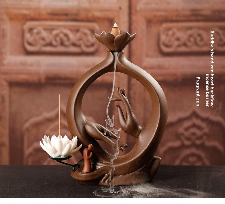 Purple sand smoke backflow aromatherapy stove creative white porcelain lotus flower bergamot zen home ornament original incense