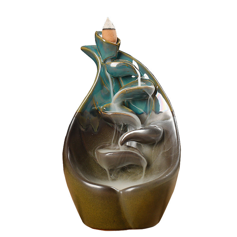 Ceramic backflow incense burner lotus leaf lotus blue left and right source aromatherapy burner handicraft home ornament