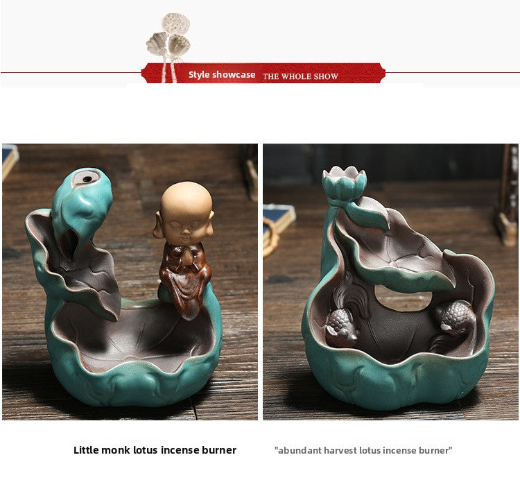Ceramic green lotus backflow incense burner, small novice aromatherapy burner ornament, handicrafts, more incense every year