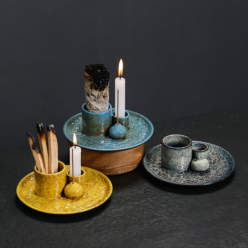 Ceramic incense burner candle holder peru holy wood burning bracket palo santo holder sage tray