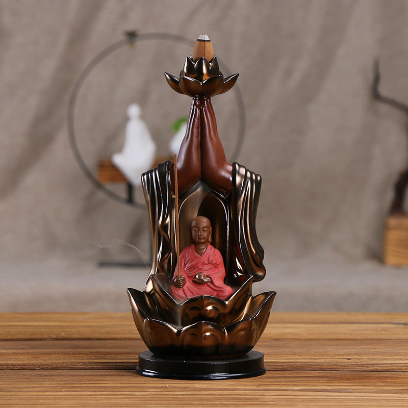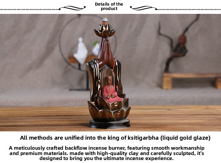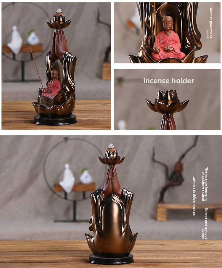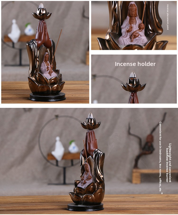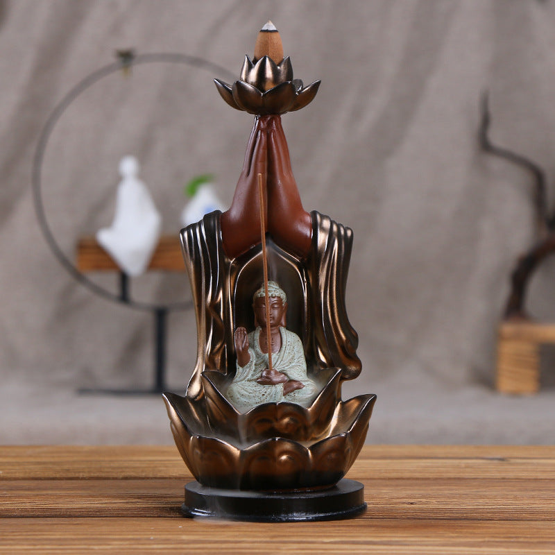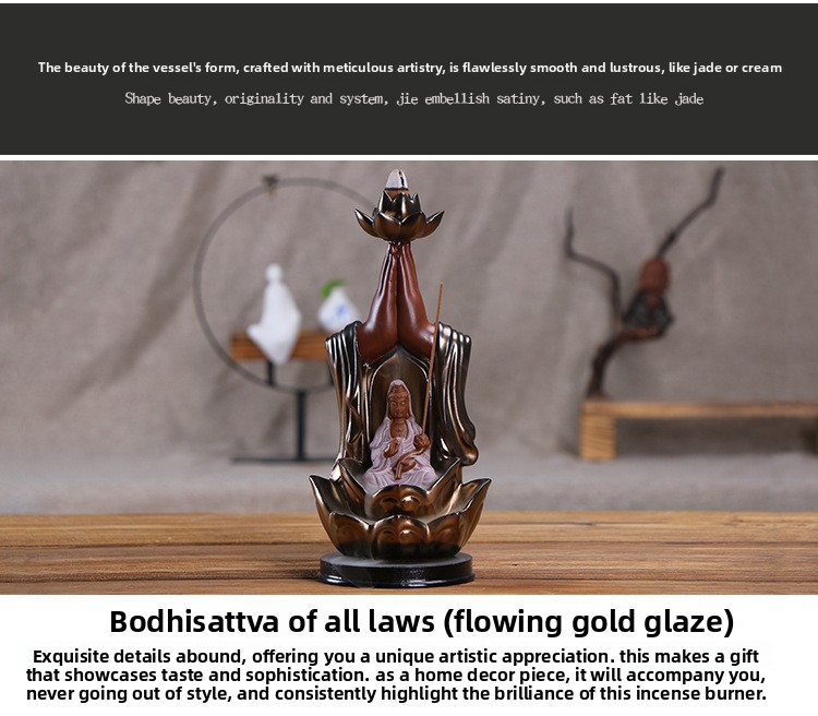 Ceramic incense burner Lotus golden bergamot Tathagata aromatherapy burner, Guanyin smoke backflow incense burner ornament