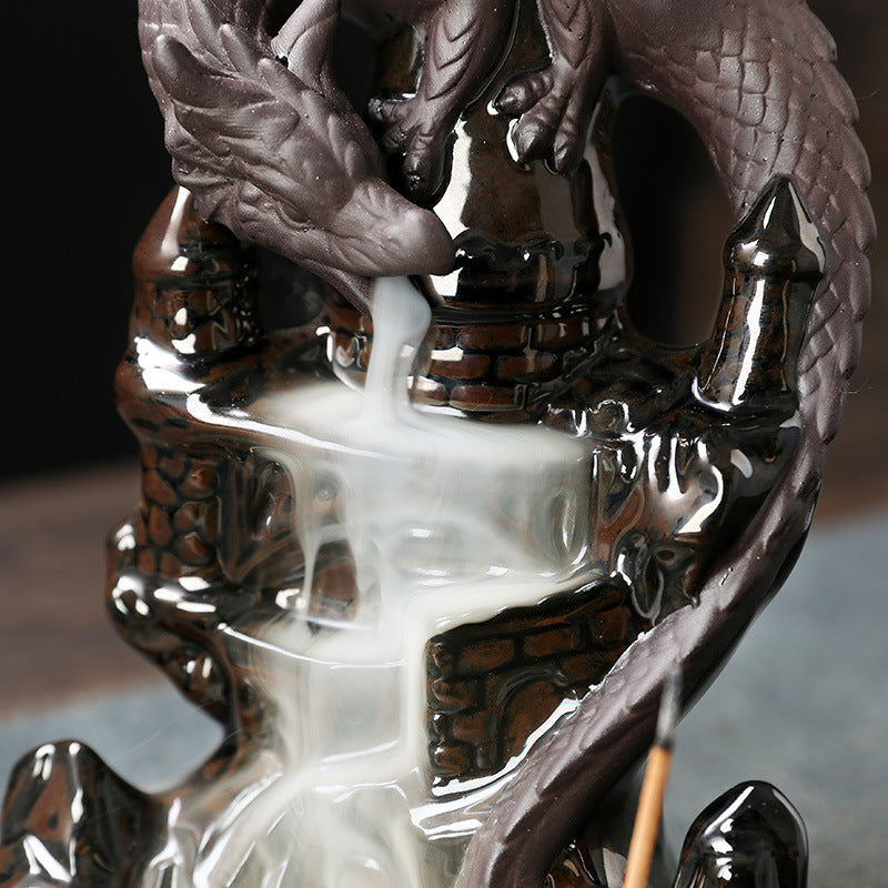 Ceramic Sandalwood Smoke Backflow Aromatherapy Furnace Home Ornament, Creative European Pterosaur Waterfall Backflow Aromatherapy Furnace