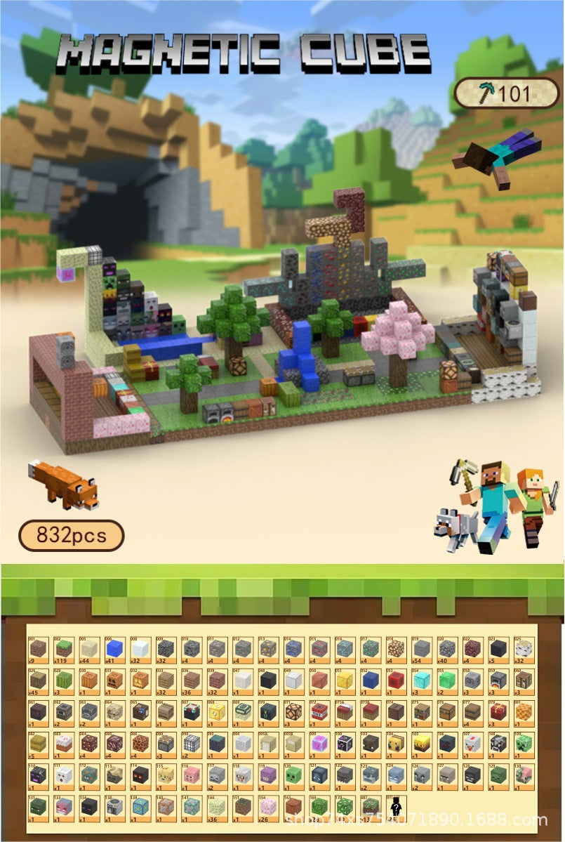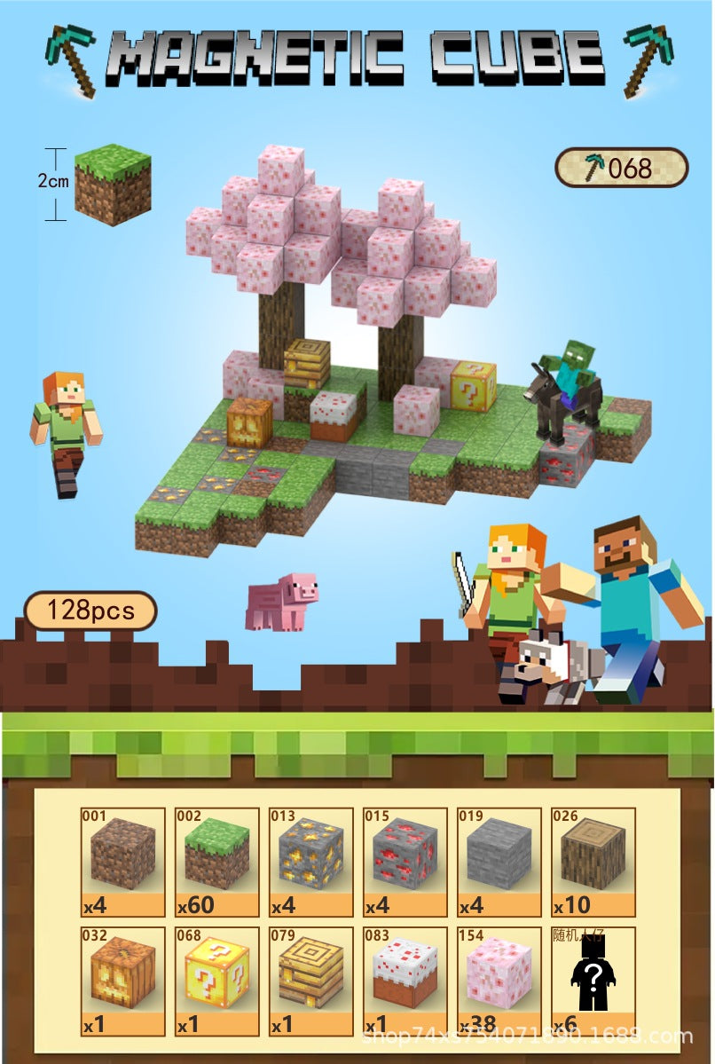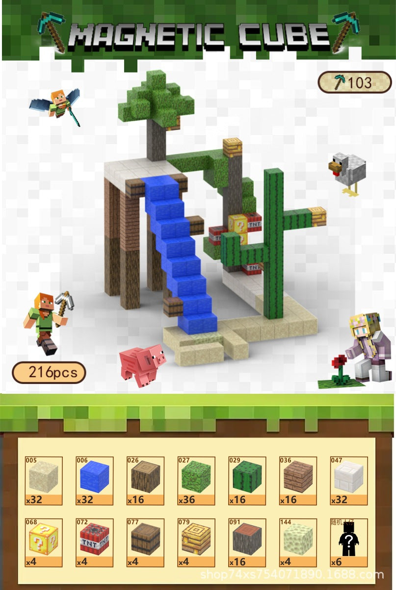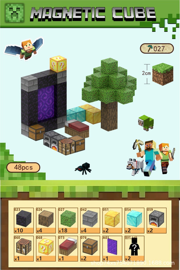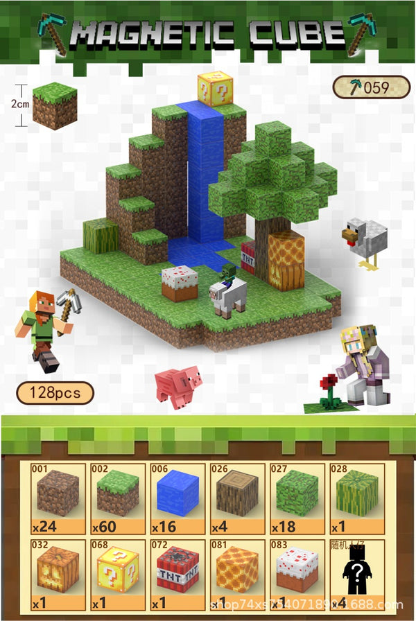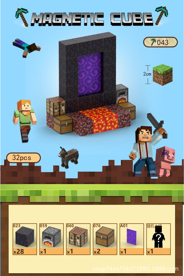 Magnetic building block assemble my world 2cm, six-sided magnetic square children's puzzle building block