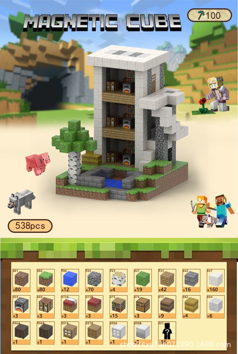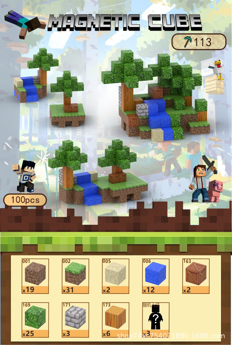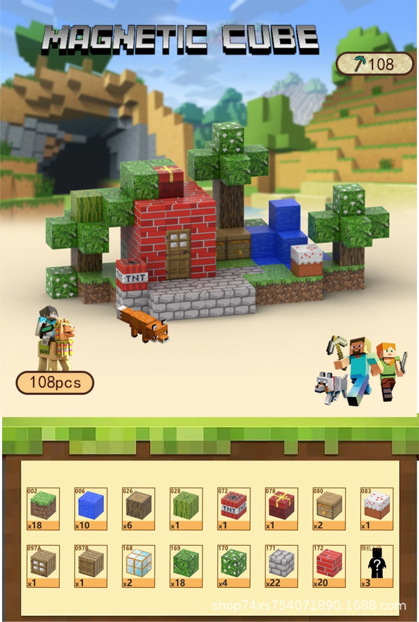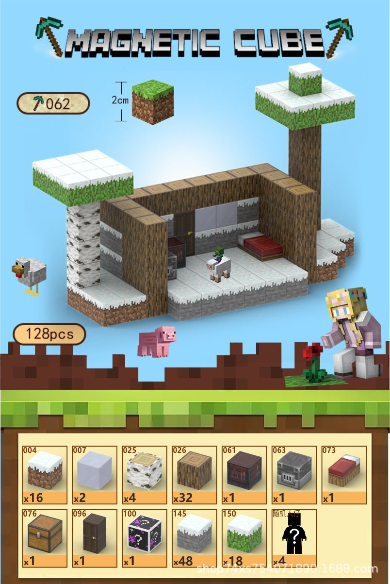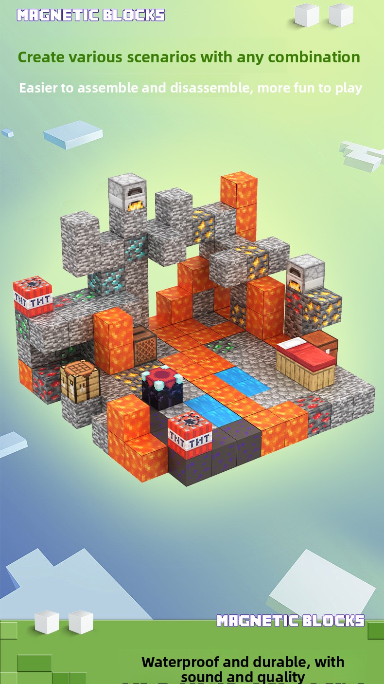 Magnetic building block assemble my world 2cm, six-sided magnetic square children's puzzle building block