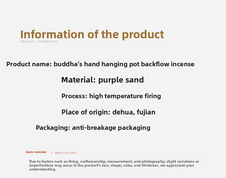 [Product Features]: It can be used as a home ornament, a home incense burner, to decorate the tea sea, to enhance the taste of tea art, and to taste the tea ceremony. It can also be placed in the study to enhance the taste!