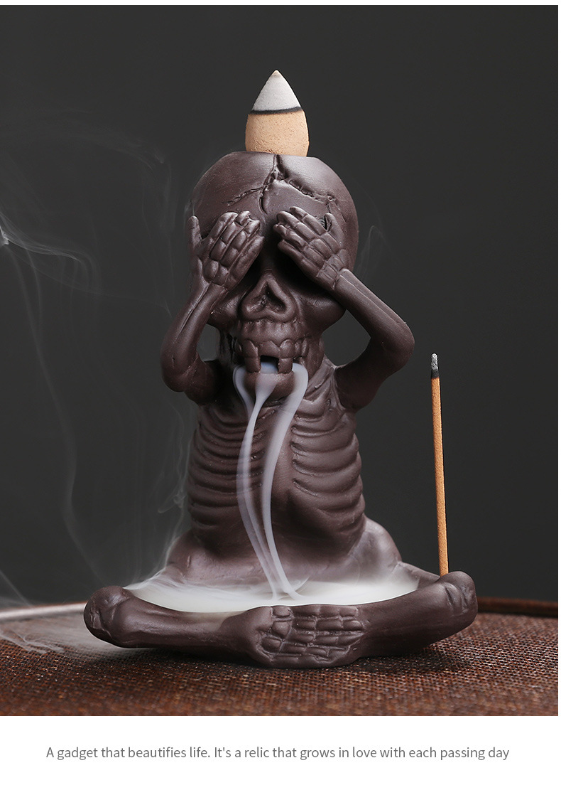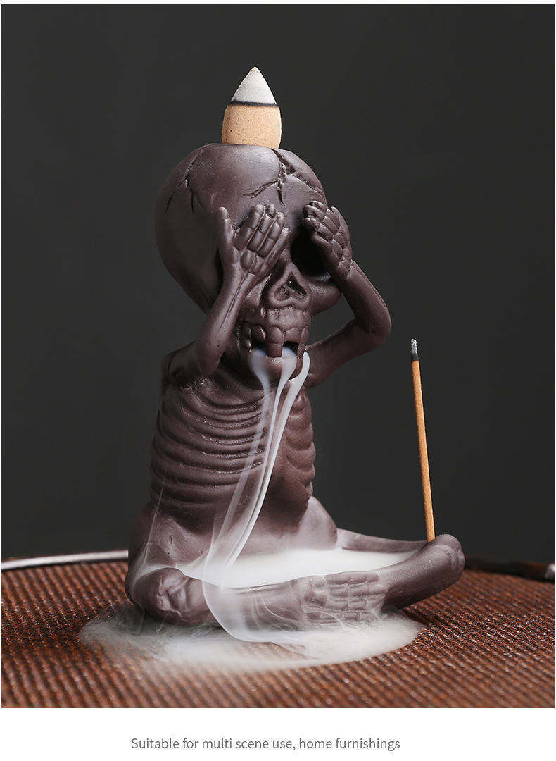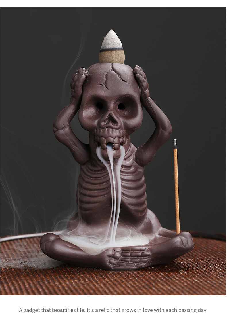 Original purple sand backflow incense burner Halloween gift, American skull head ghost backflow incense incense burner ornament