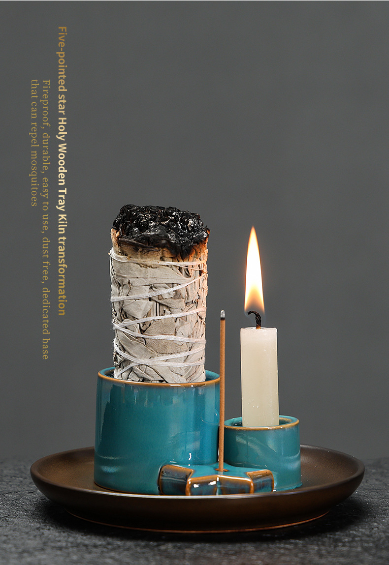 Peruvian Holy Stick Incense Tray Palo Santo Aromatherapy Stove, European and American California White Sage Burning Container