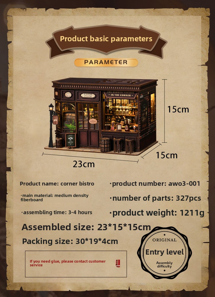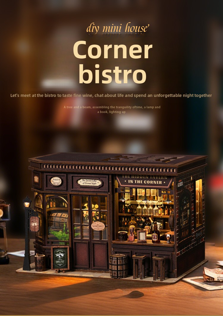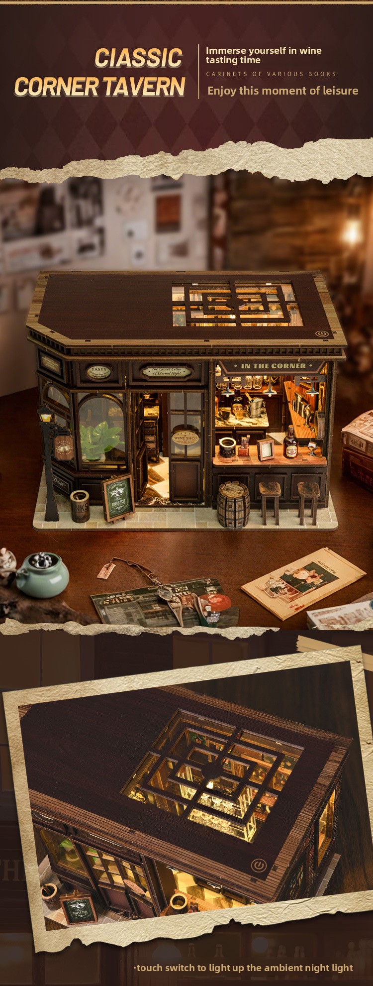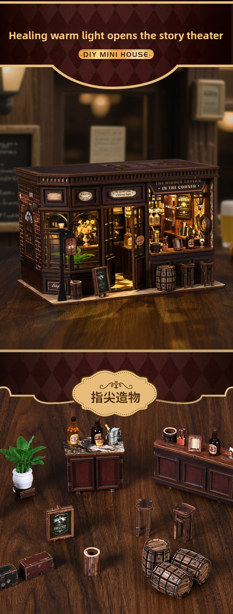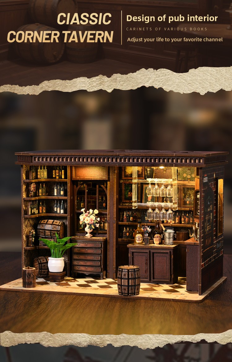 Popular, corner tavern DIY bookend hut booknook bookend assembly, model house DIY ornament