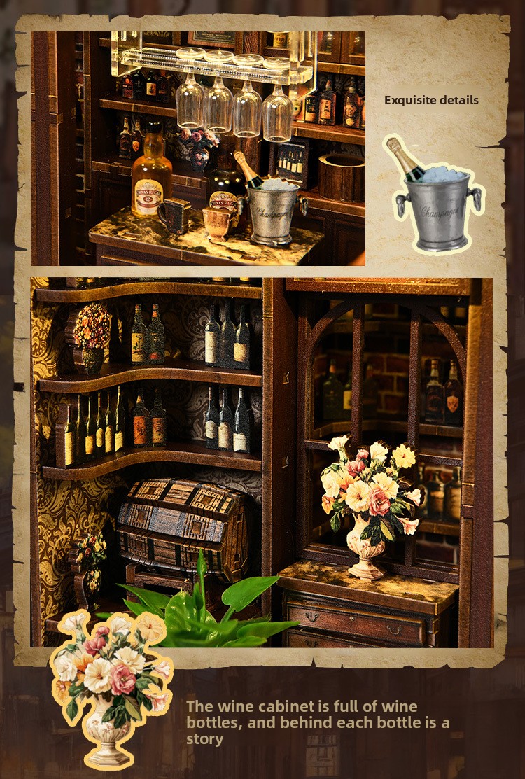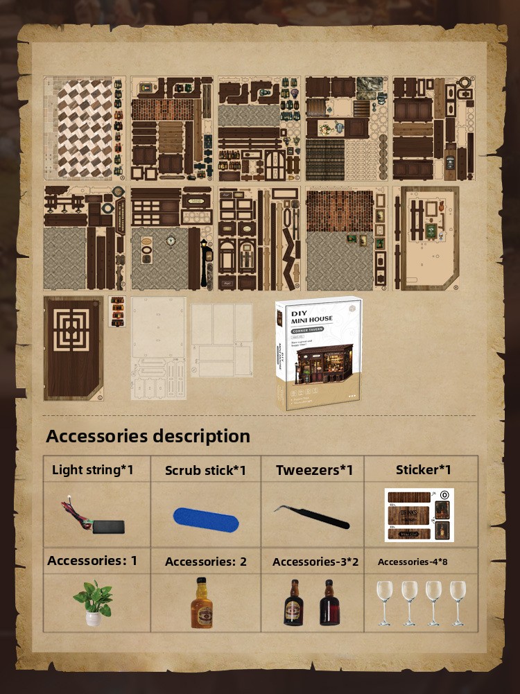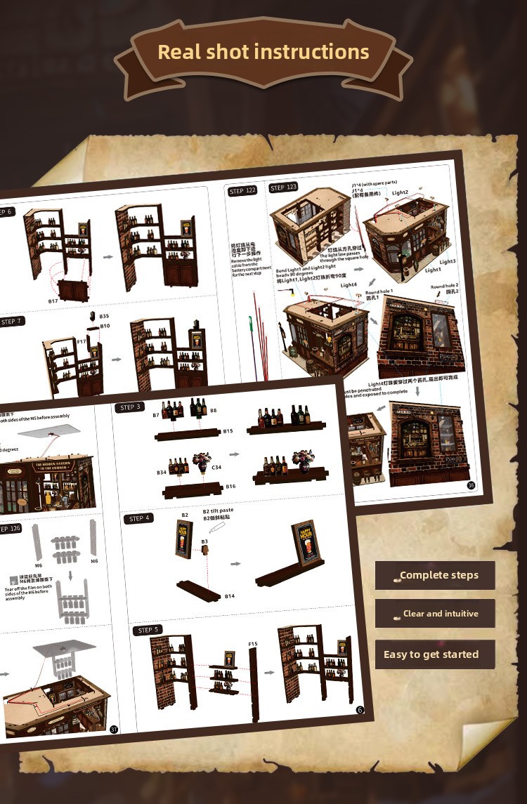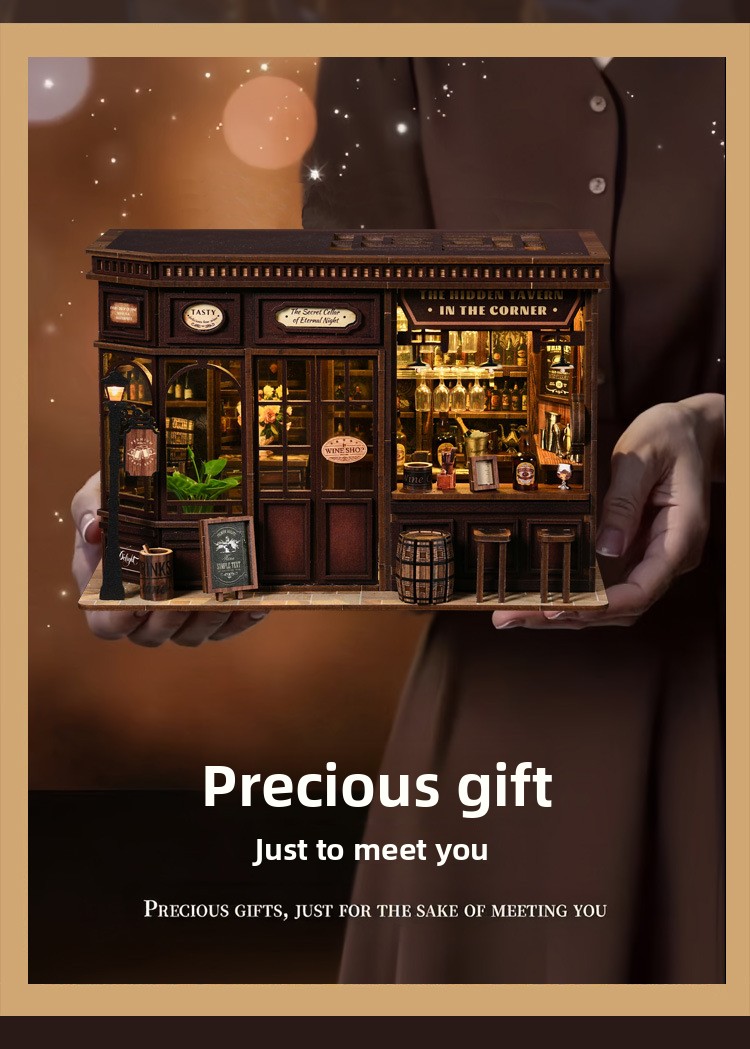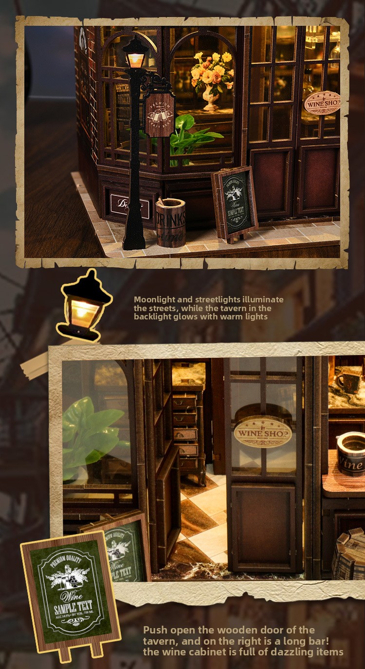 Popular, corner tavern DIY bookend hut booknook bookend assembly, model house DIY ornament