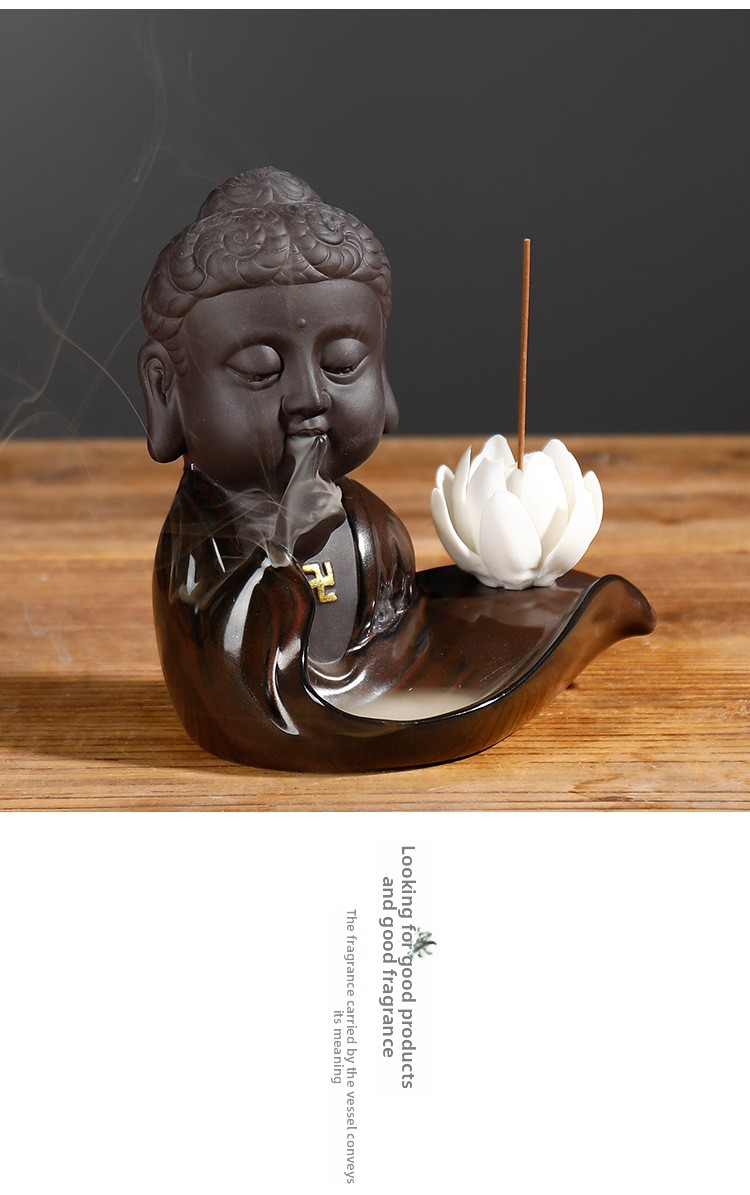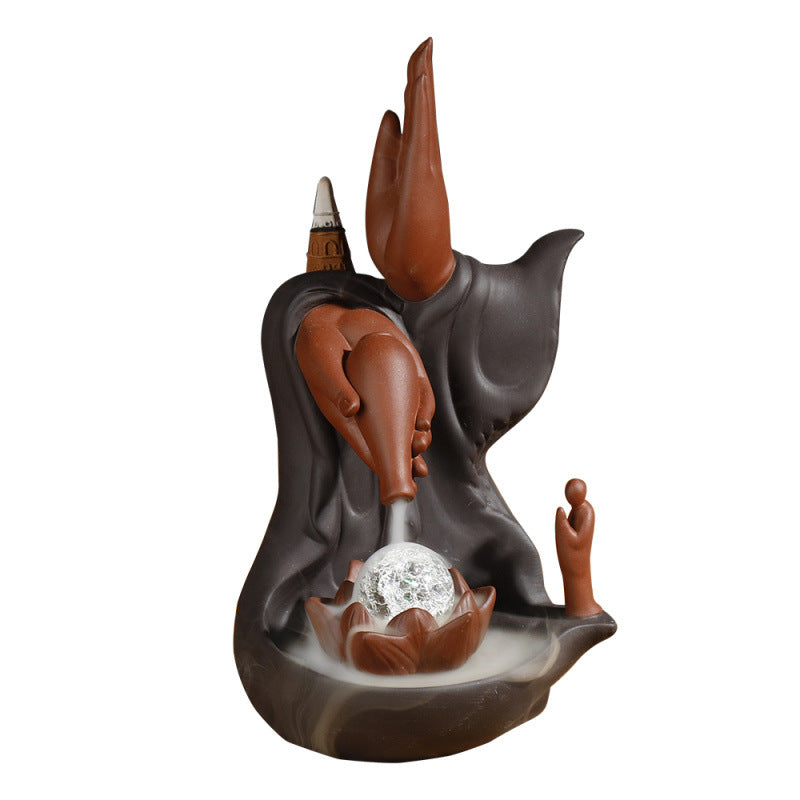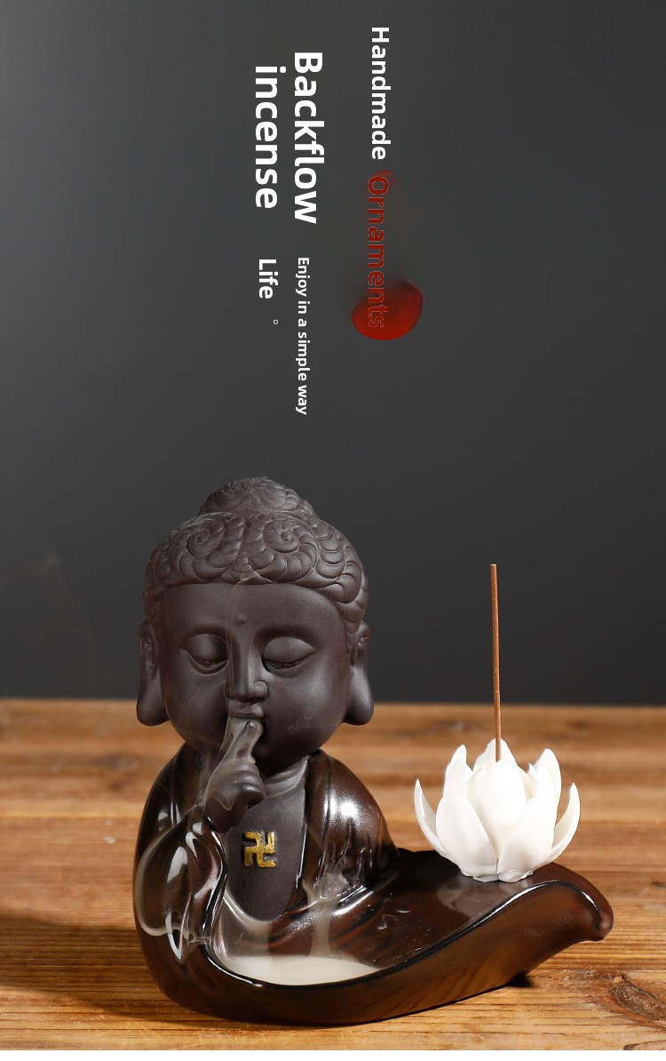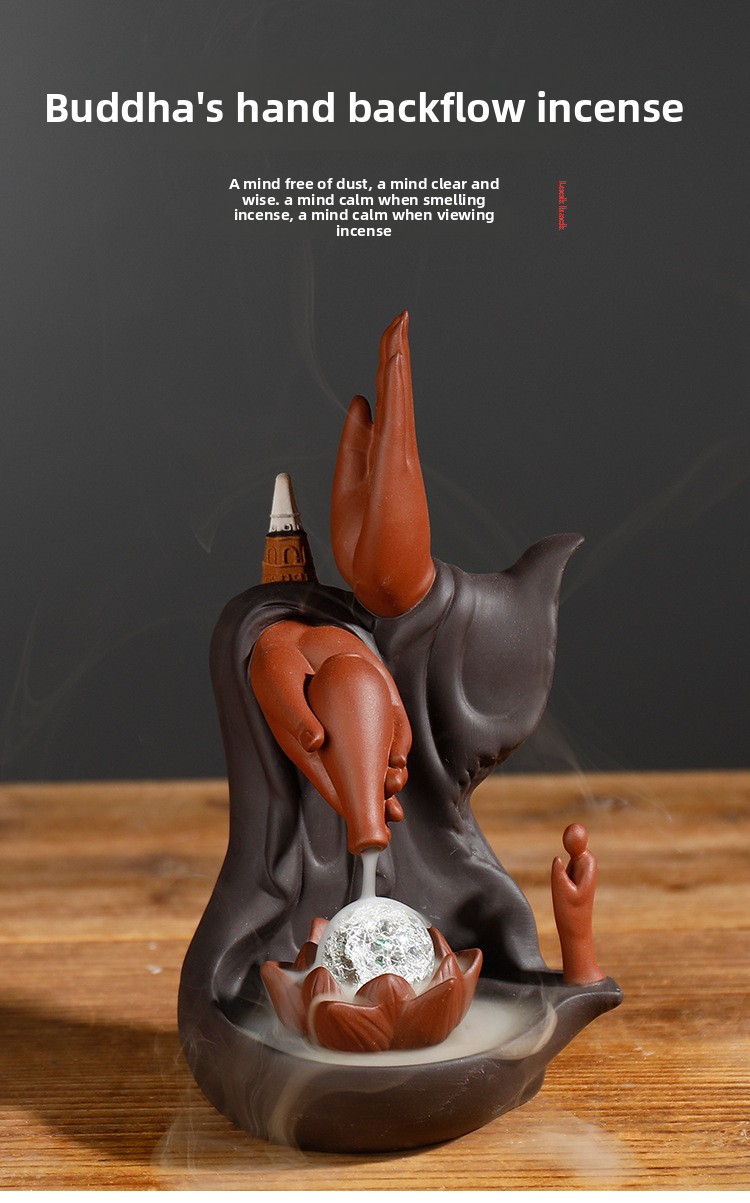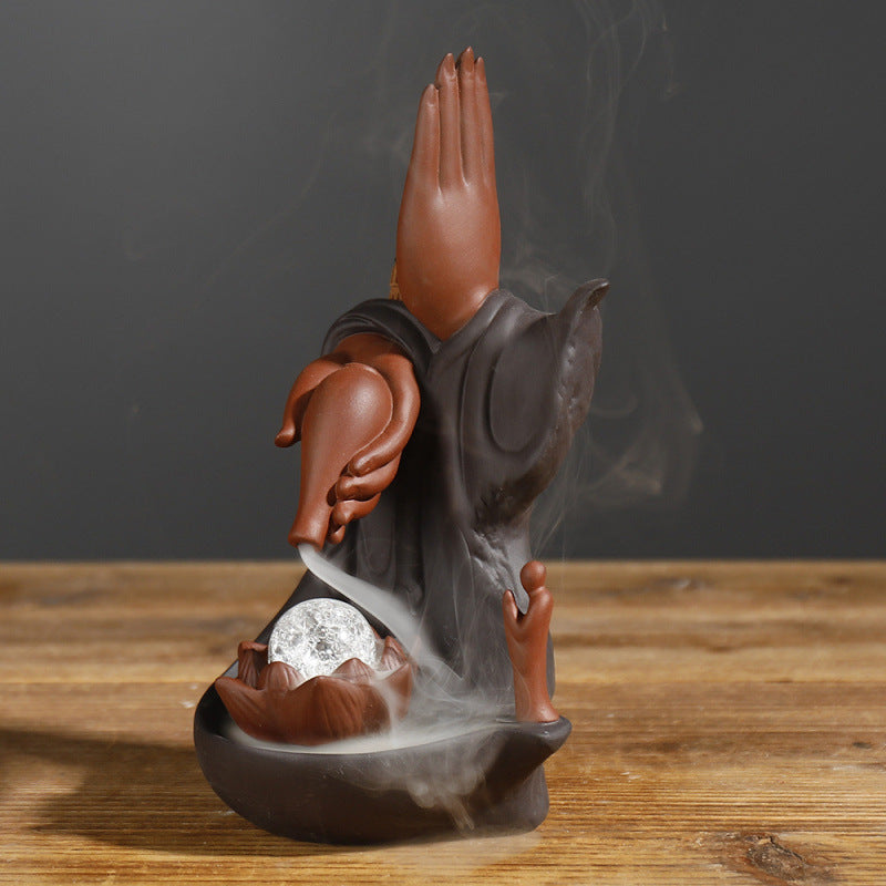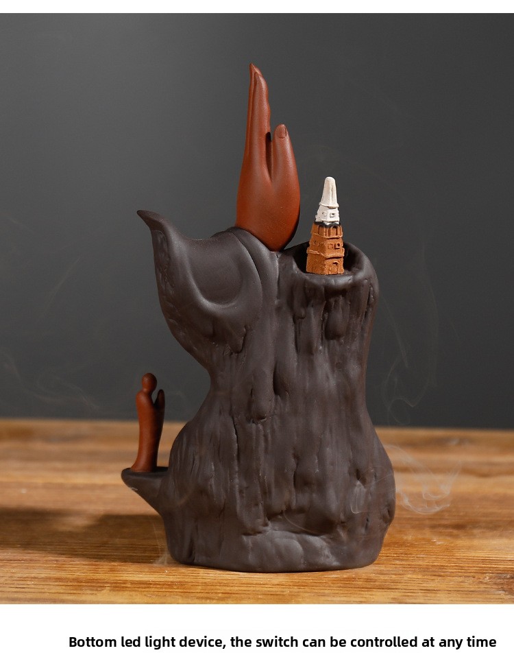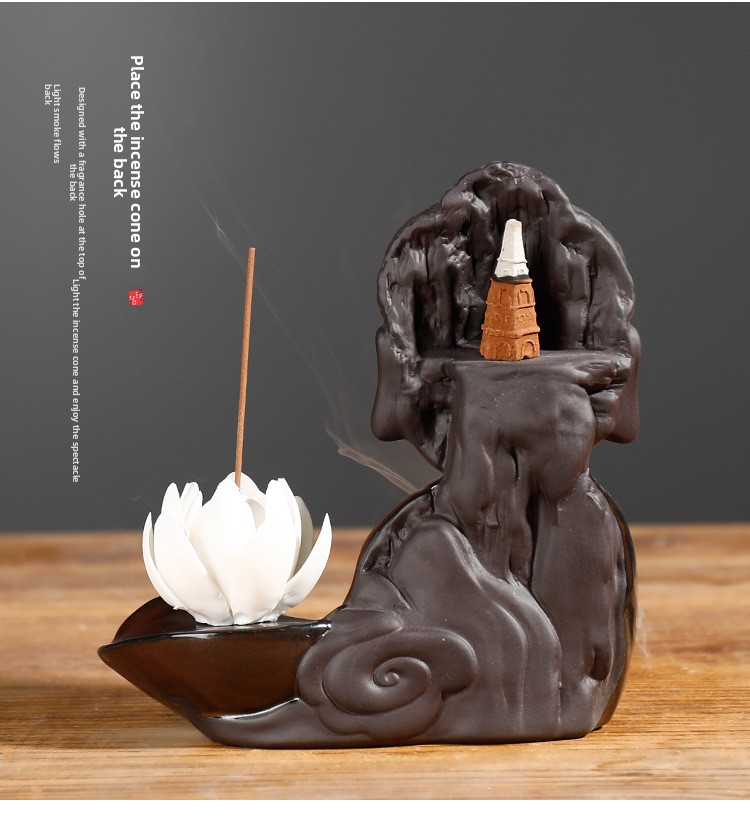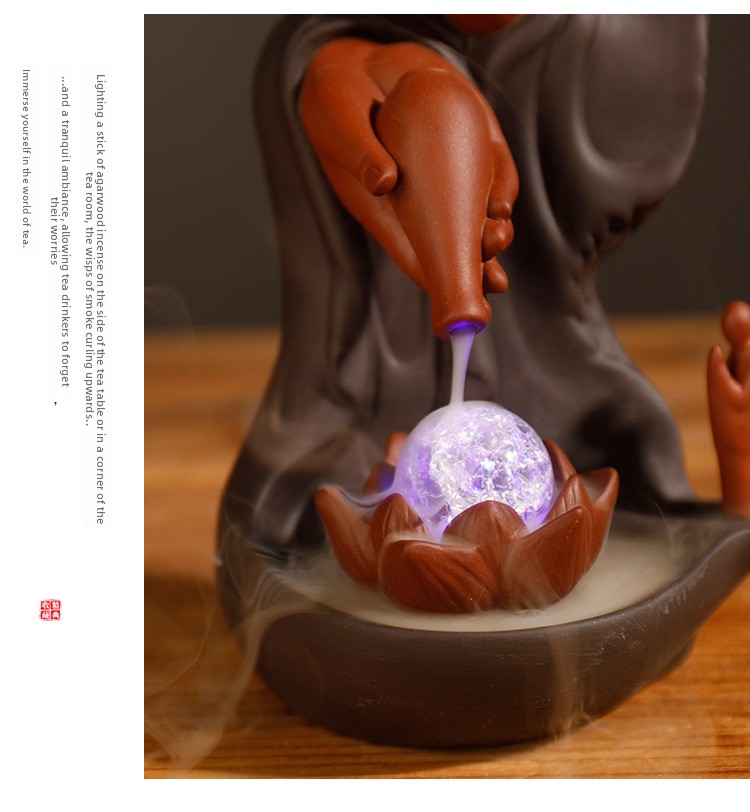 Purple sand lotus bergamot LED light Zen backflow incense burner, creative home crafts aromatherapy burner ornament