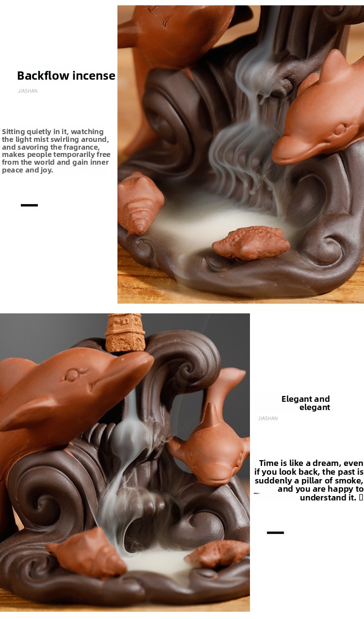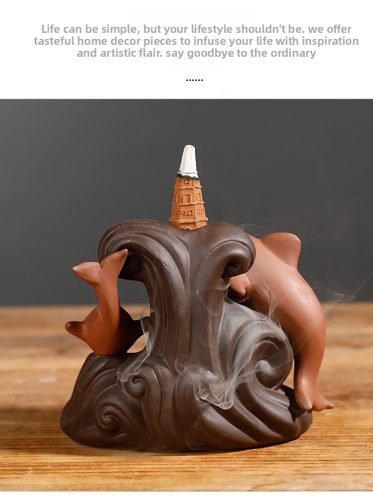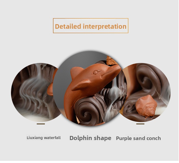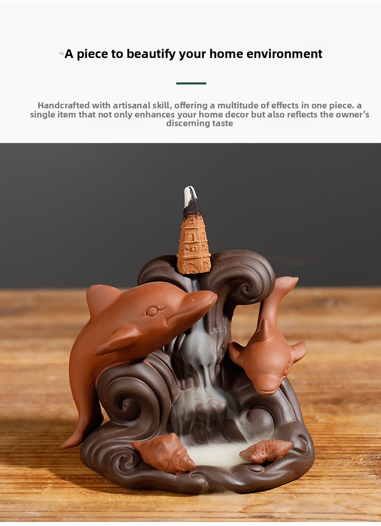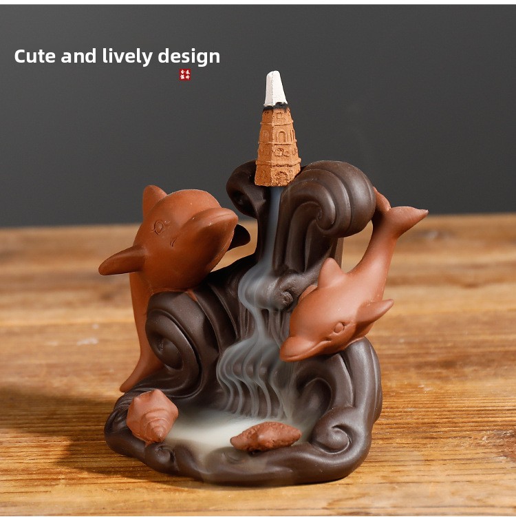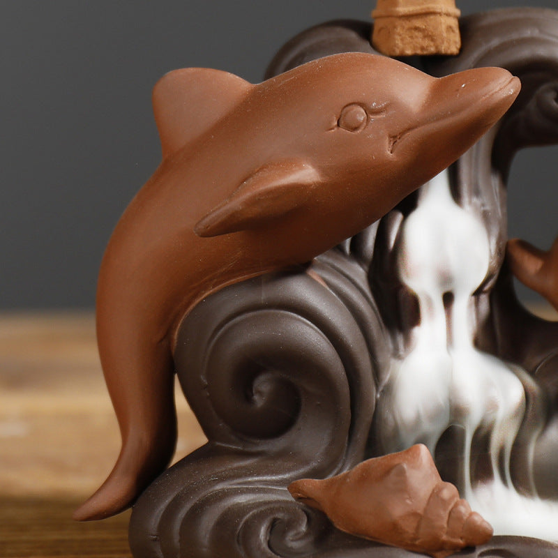 Purple sand viewing tower cigarette backflow incense burner creative marine animal dolphin sandalwood backflow aromatherapy burner ornament